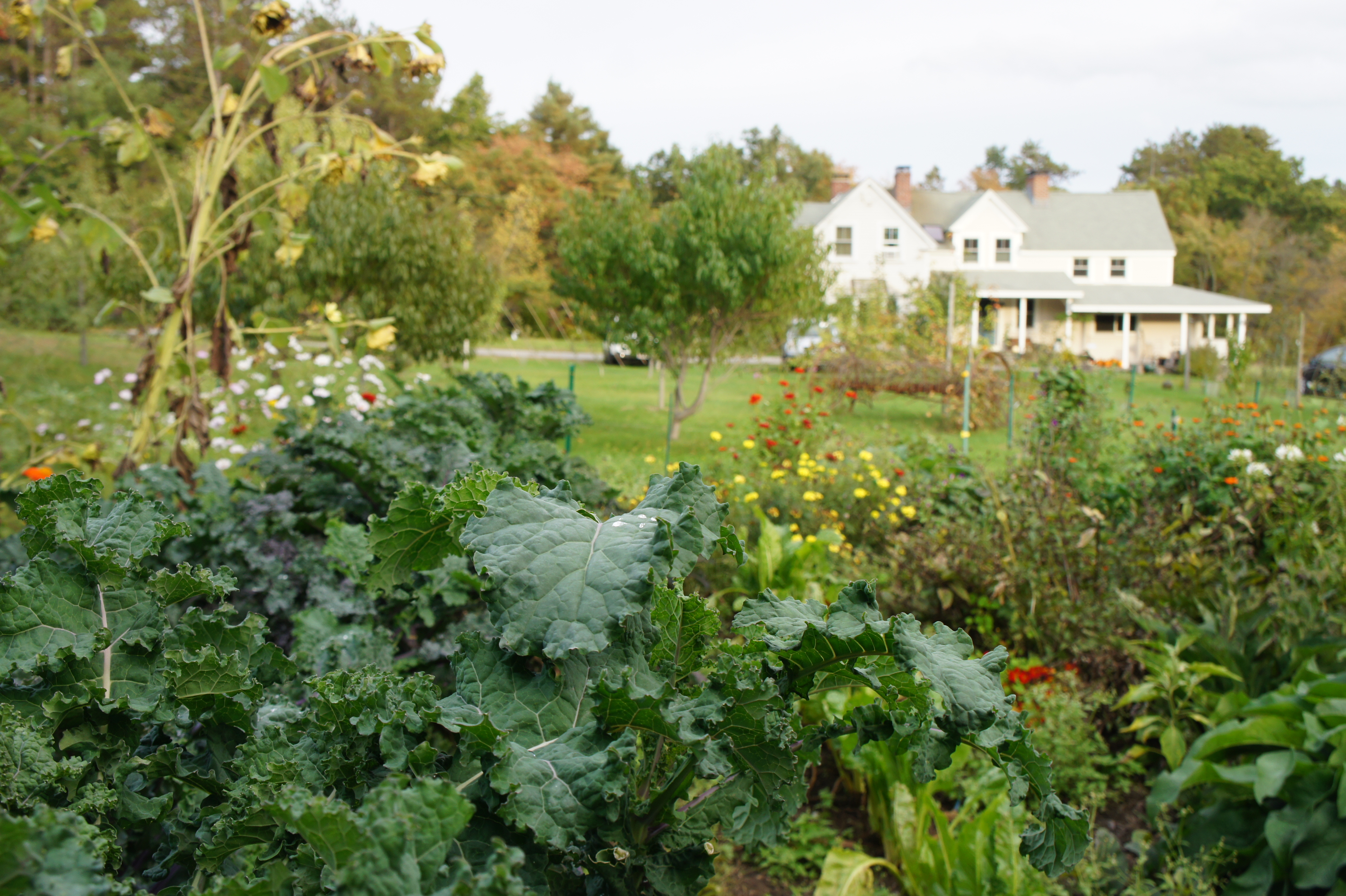 Linda moved into the farmhouse on this 25 acre property in 2001 and took years to nurse the apple trees into a full fledged organic orchard. Historically, the farm used to be an egg farm and then an orchard, always cared for and well-tended, but Linda and her partner, Blase Provitola, have transformed the space into a nourishing art-filled landscape replete with their annual sculpture walk. Blase built a Native American medicine wheel and a certified organic potato crop. Together they also tend an enormous kitchen garden, pumpkin and squash patch and pick-your-own raspberries.
