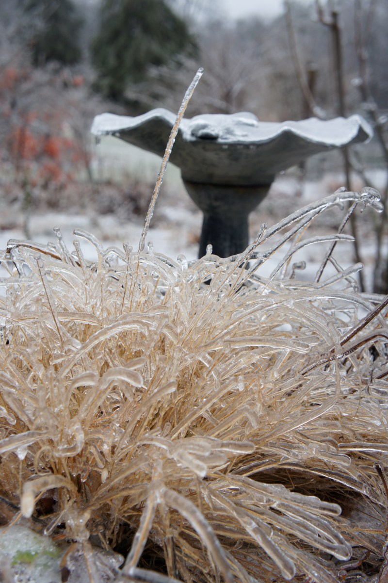 ice on grass, robin’s house