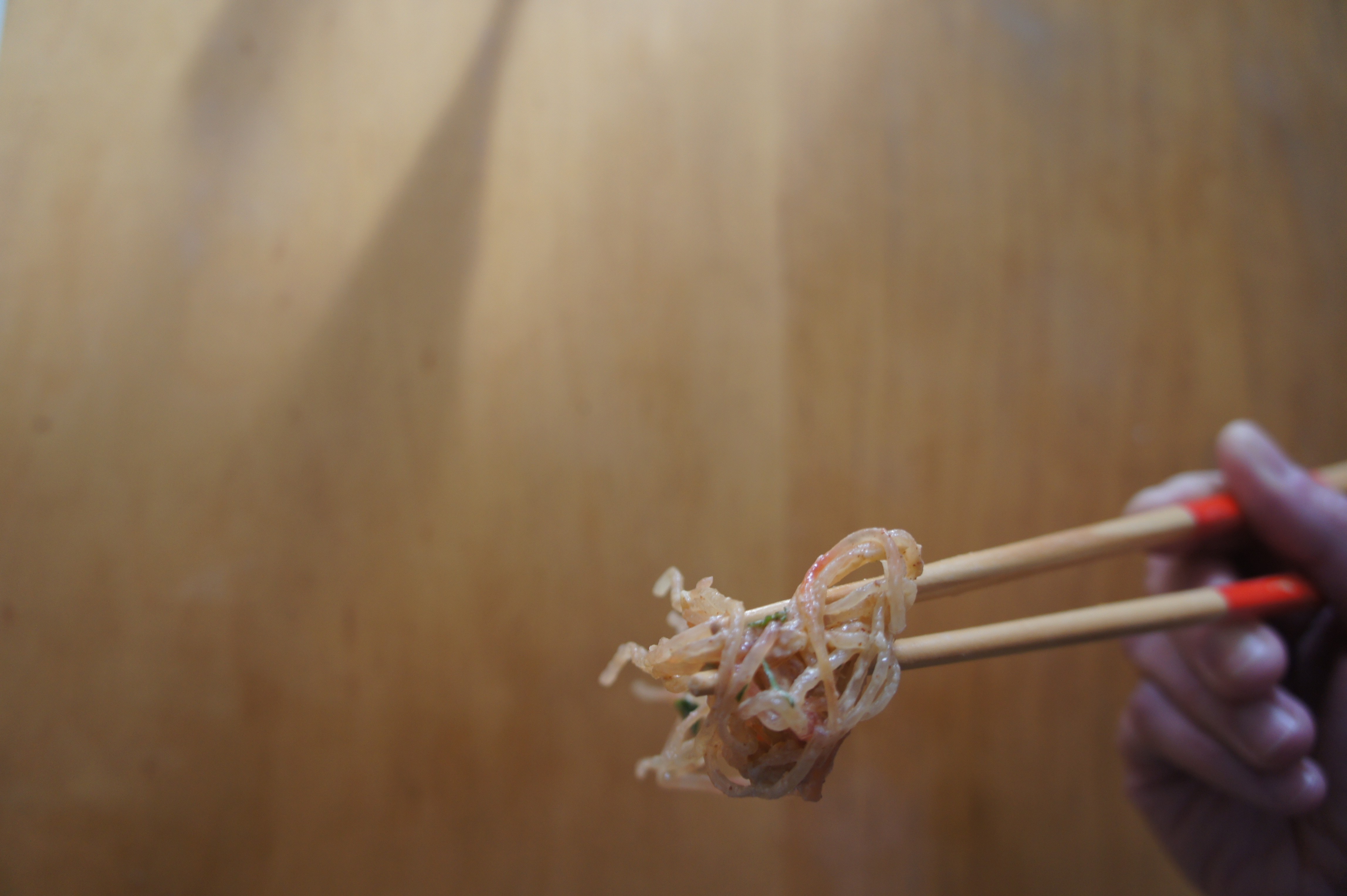 Make sauce by placing all ingredients in a food processor or blender and place rinsed noodles in sauce- the longer they’re in, the more flavor they’ll absorb and the softer they’ll become.