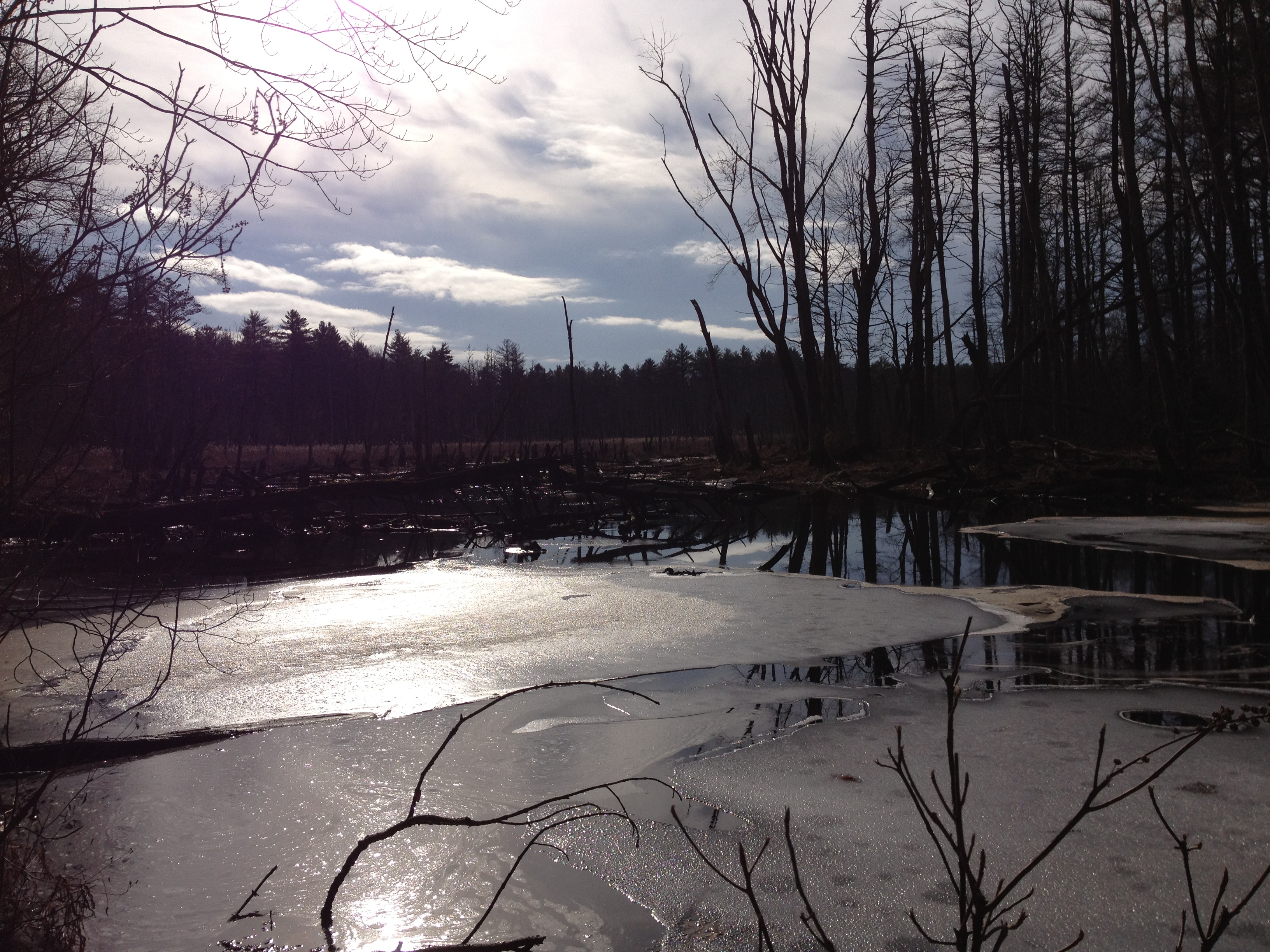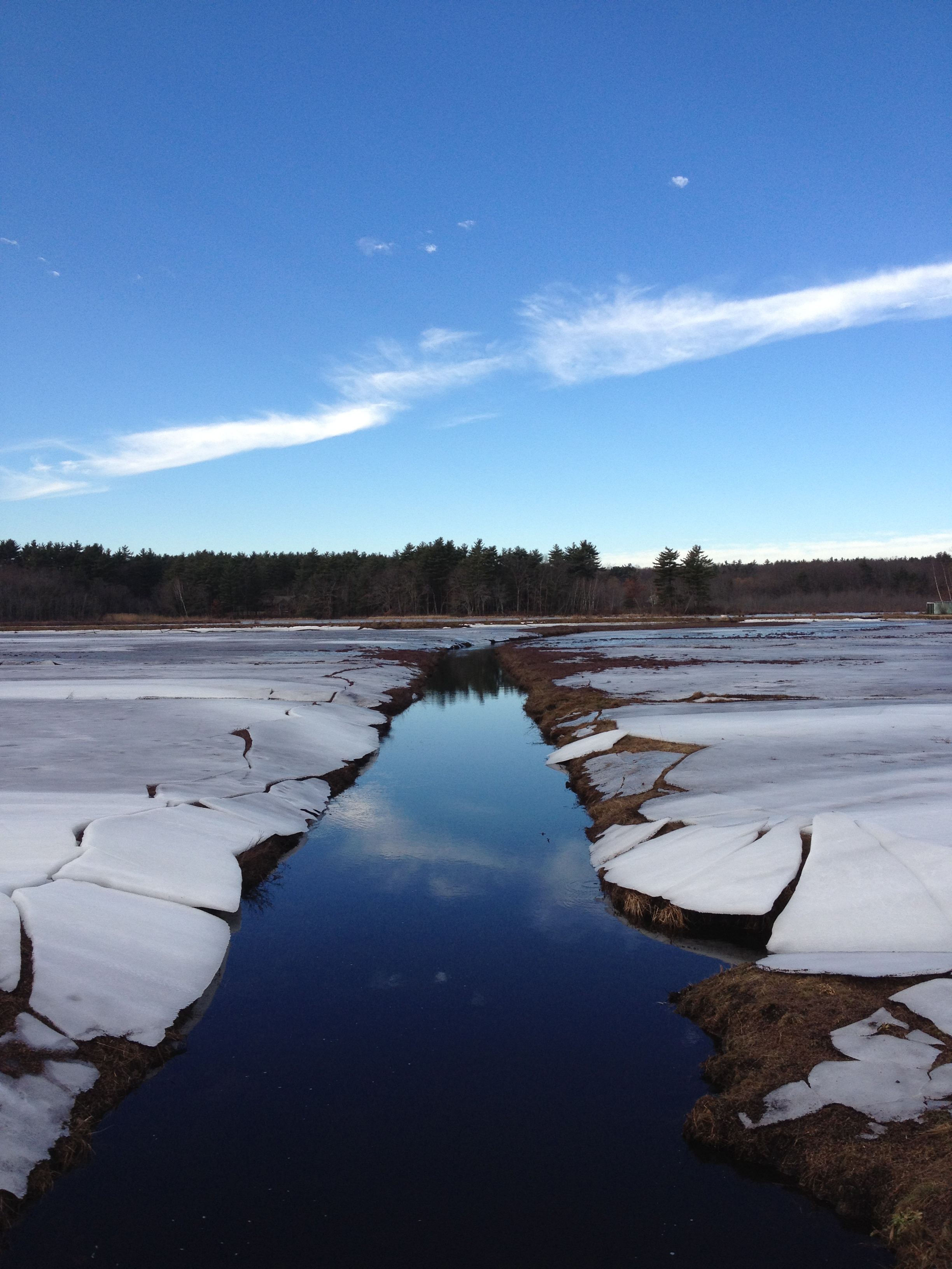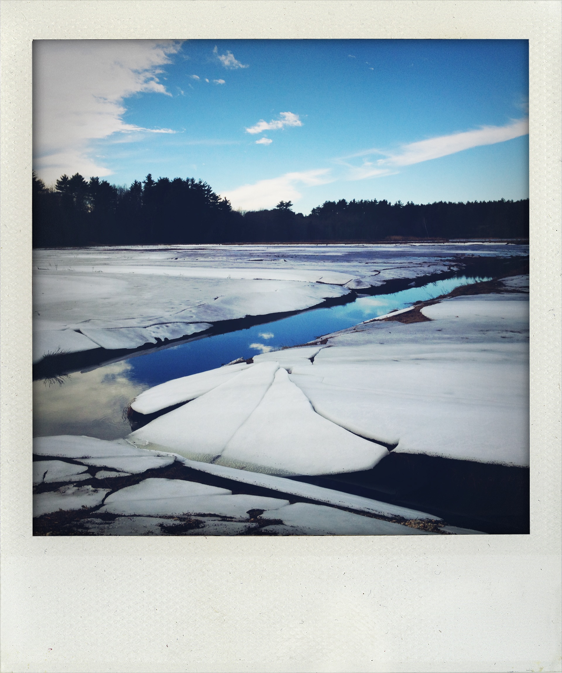 Before I got sick I knew I was running low on emotional fuel so I engaged in several soul-feeding activities in between fretting about the usual challenges of self-employment, such as cooking and eating nourishing food, playing my guitar, and taking epically long walks with the dogs. The cranberry bog crusted with long cracking sheets of melting snow was spectacular and we’ve been walking in the warm spell, followed by the bitter cold snap, crunching through snow and taking in the sights, such beauty right outside our door.