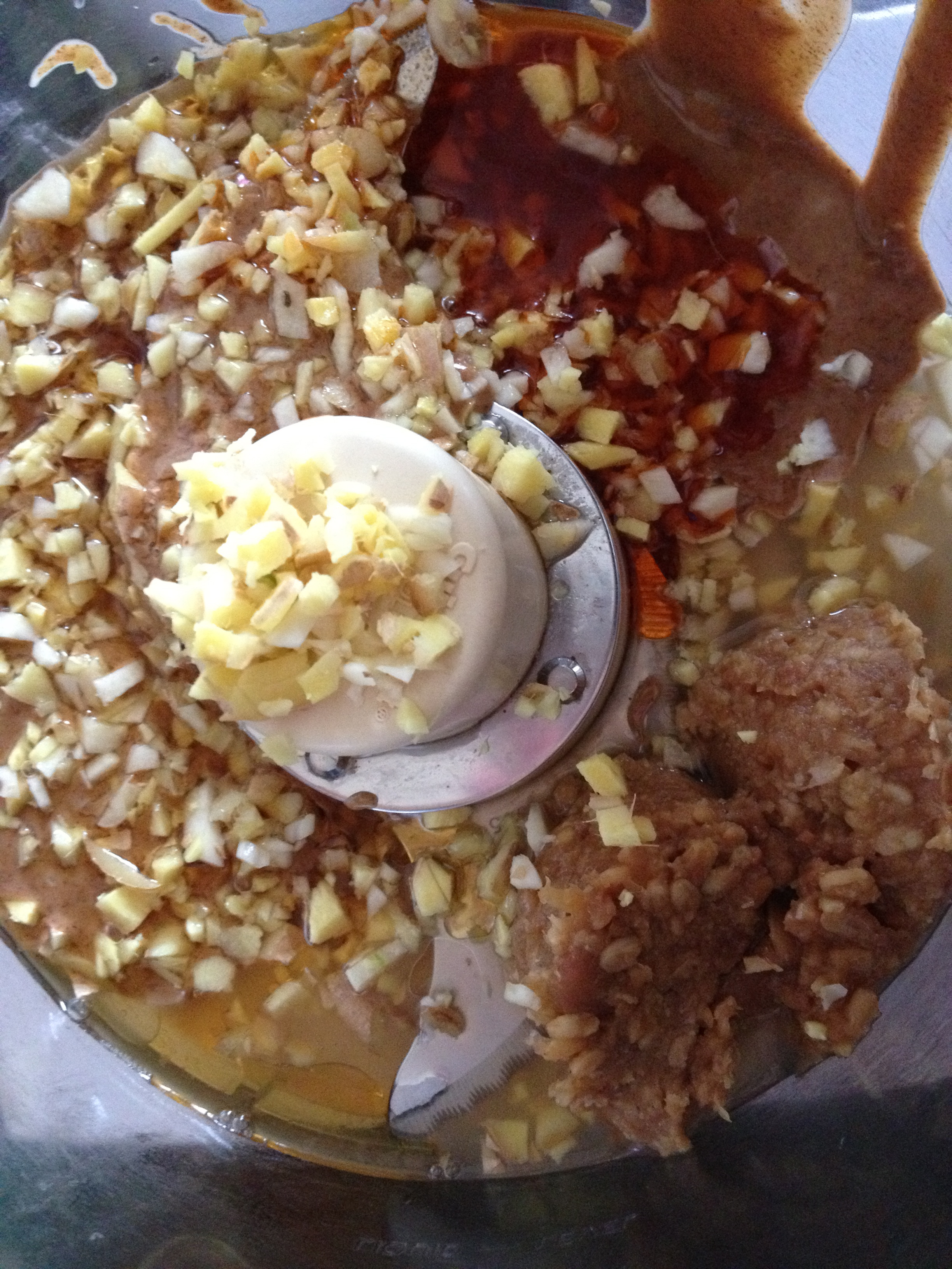 - 2 Tbs. sesame oil (I used 1 tbs roasted and 1 tbs hot)