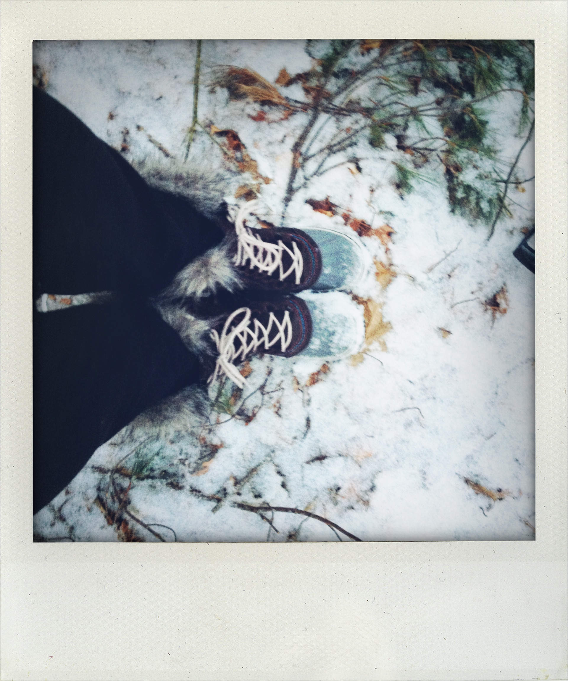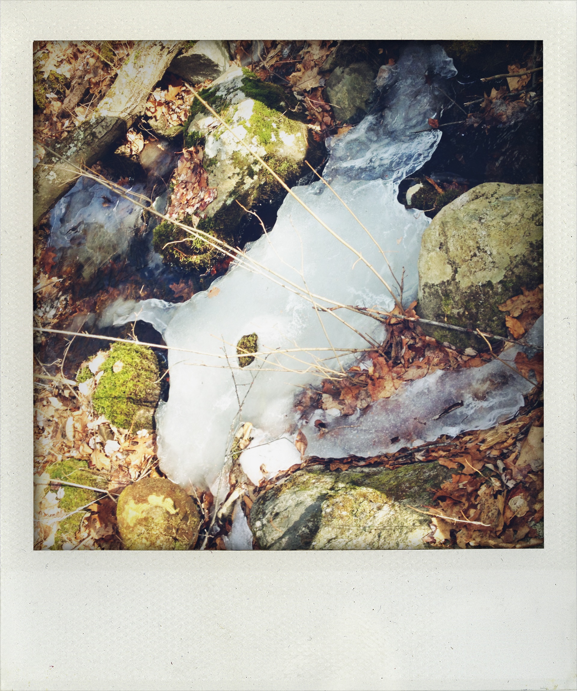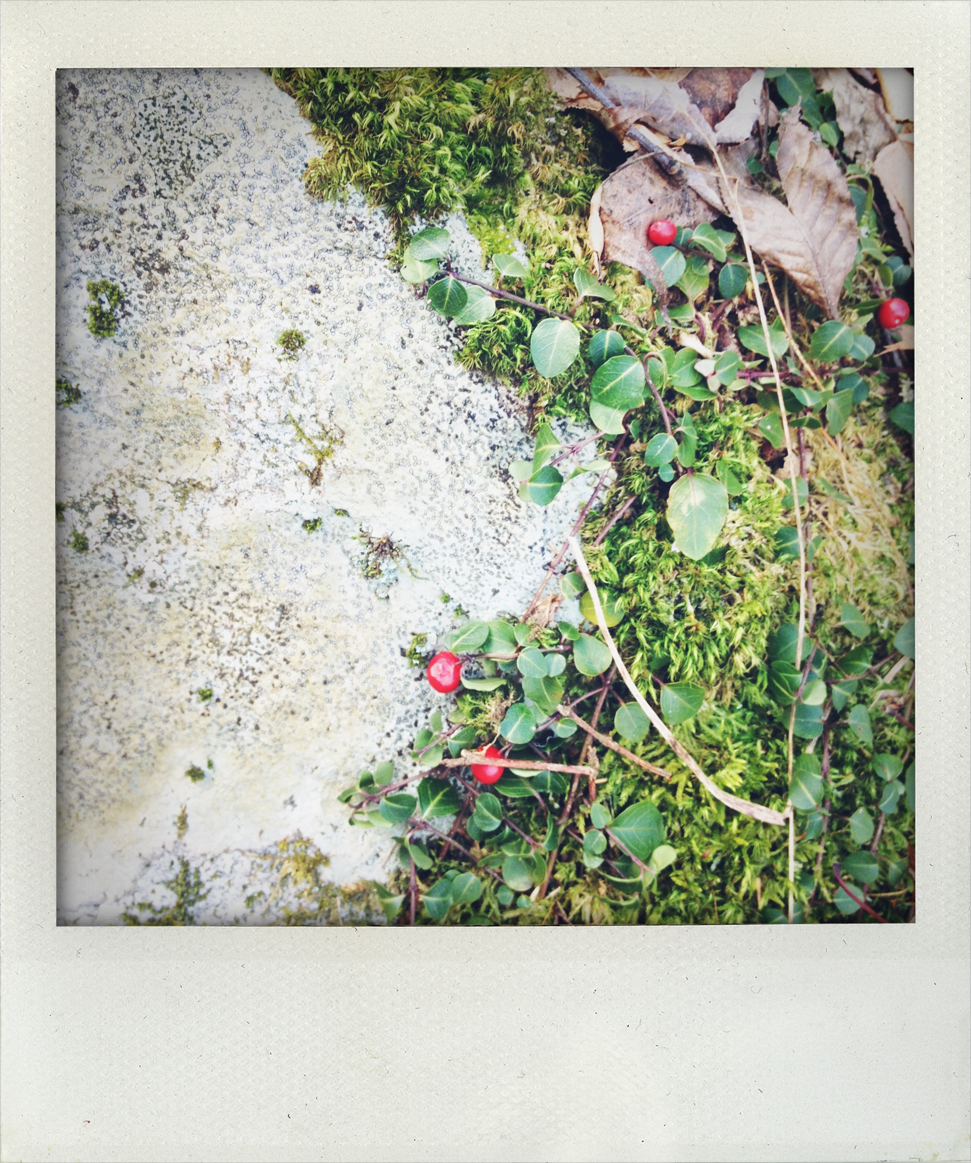 For the last two weeks, I’ve been taking my iPhone to the woods every day when walking the dogs, excursions I’ve dubbed as Polaroid walks. SnapItPhoto app, how I love your real Polaroid sound and required shaking-to-expose feature, bringing me back to the real thing we used when I was a kid, (by the way I acquired a real one from Chris’s grandmother, but do not currently have any film…) These journeys remind me to look for color and composition everywhere I turn so the concept of searching for frame, light and little pops of brightness and nuance in a winter palate of white, ochre and grey, pervades even after I’ve put my camera down.