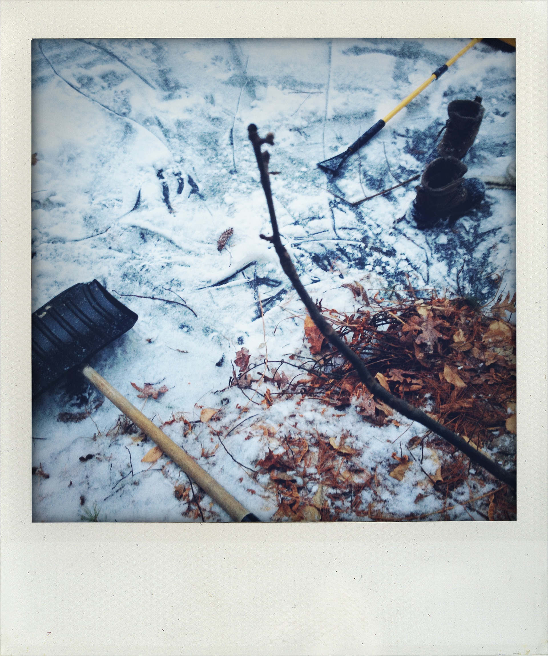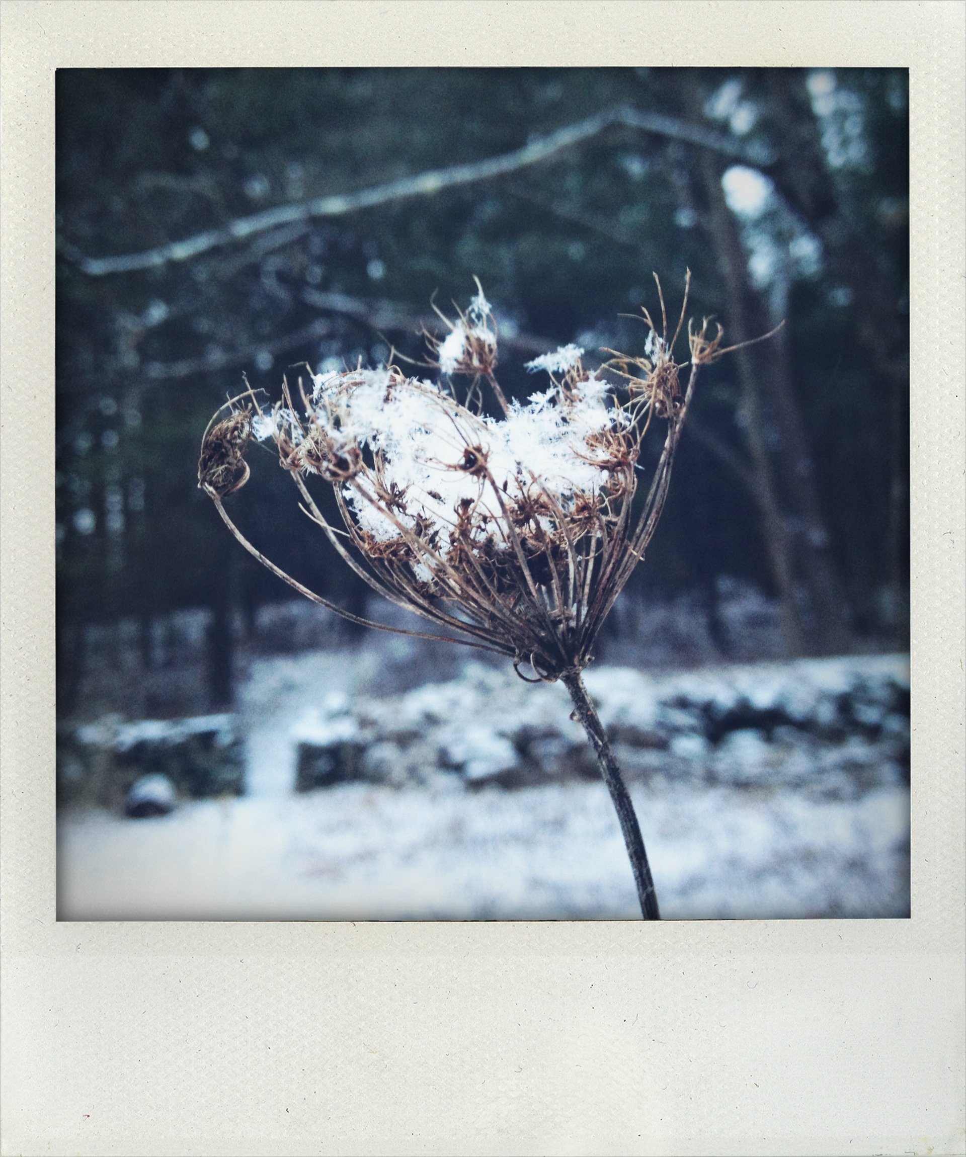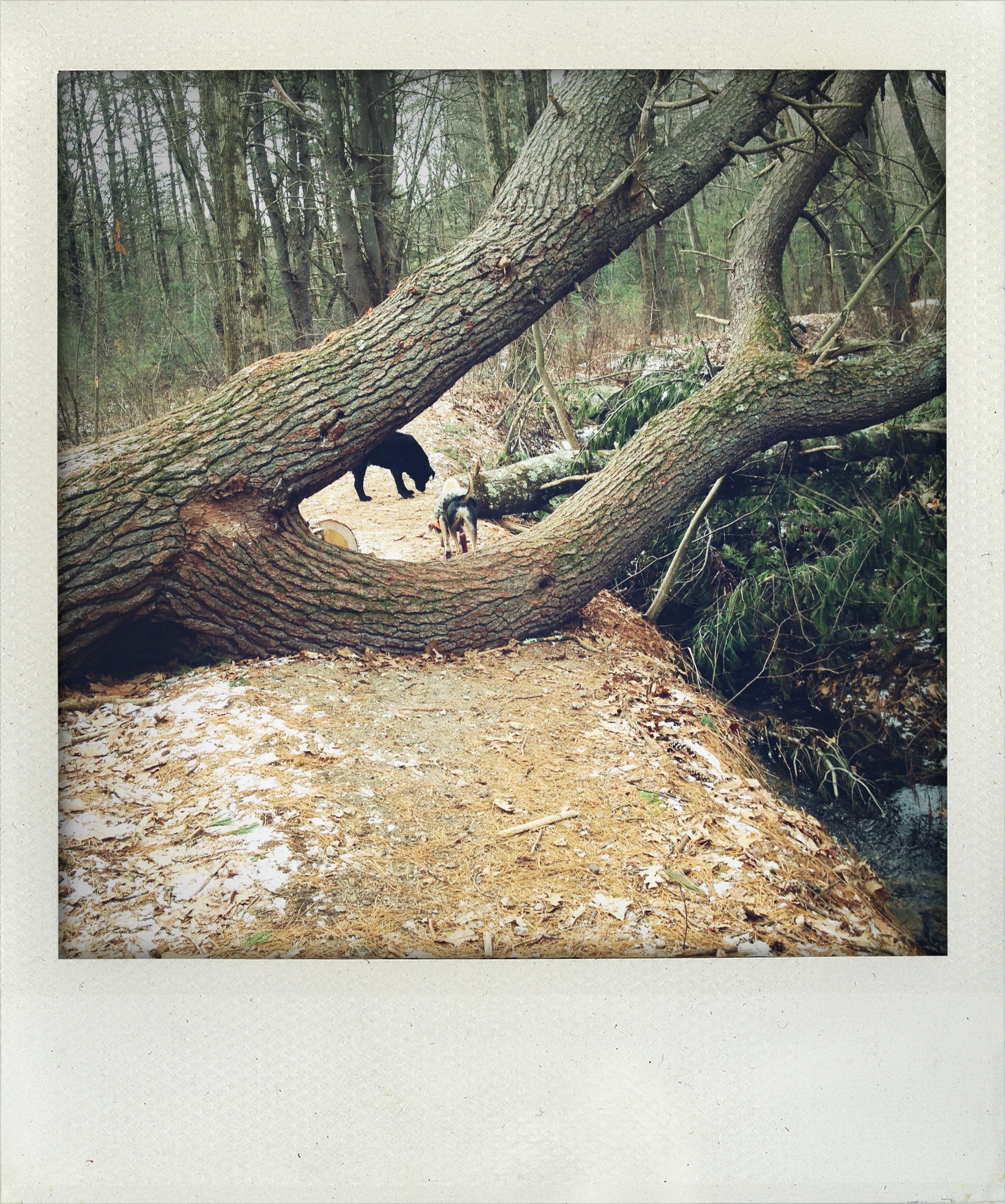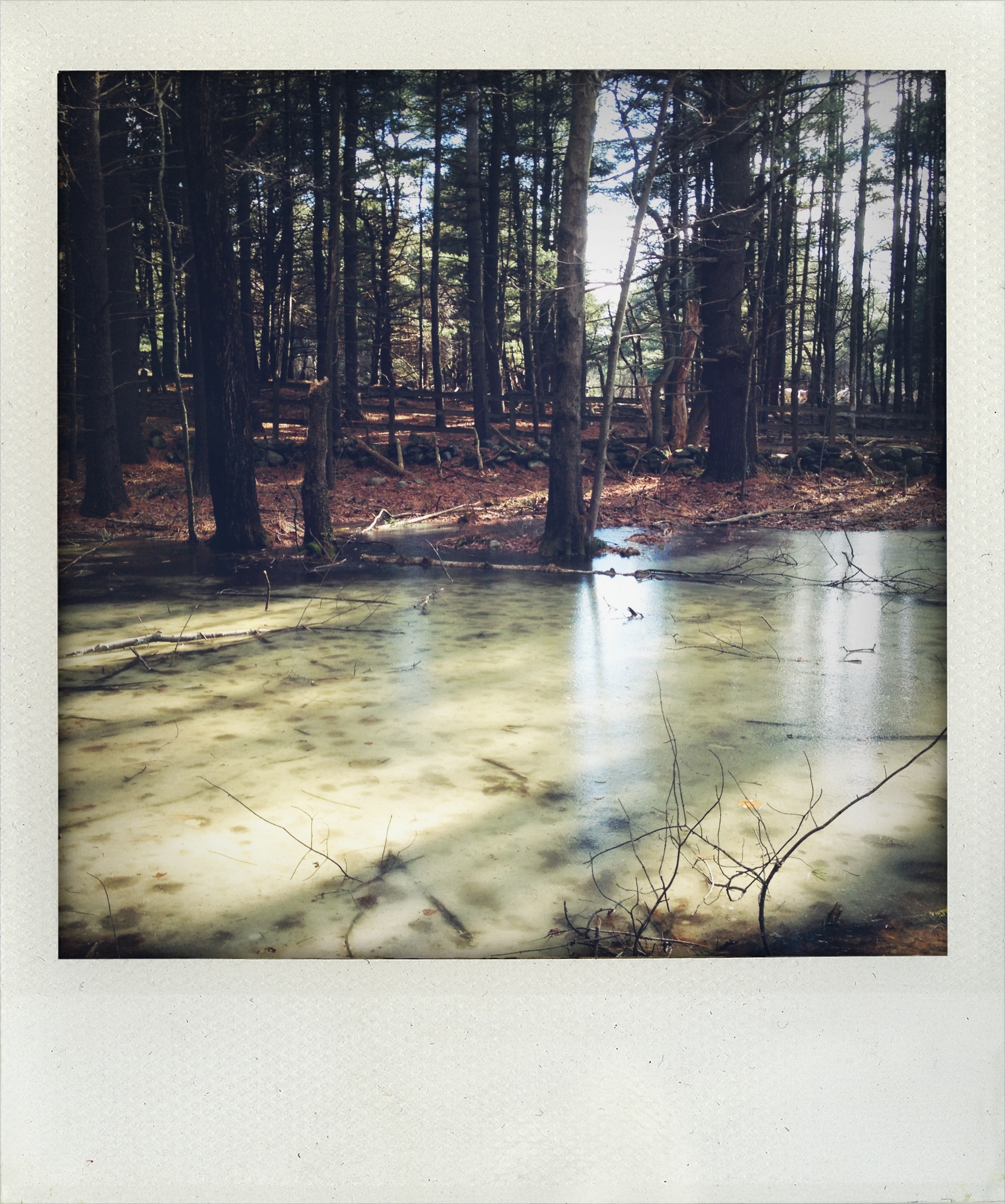 For the last two weeks, I’ve been taking my iPhone to the woods every day when walking the dogs, excursions I’ve dubbed as Polaroid walks. SnapItPhoto app, how I love your real Polaroid sound and required shaking-to-expose feature, bringing me back to the real thing we used when I was a kid, (by the way I acquired a real one from Chris’s grandmother, but do not currently have any film…) These journeys remind me to look for color and composition everywhere I turn so the concept of searching for frame, light and little pops of brightness and nuance in a winter palate of white, ochre and grey, pervades even after I’ve put my camera down.