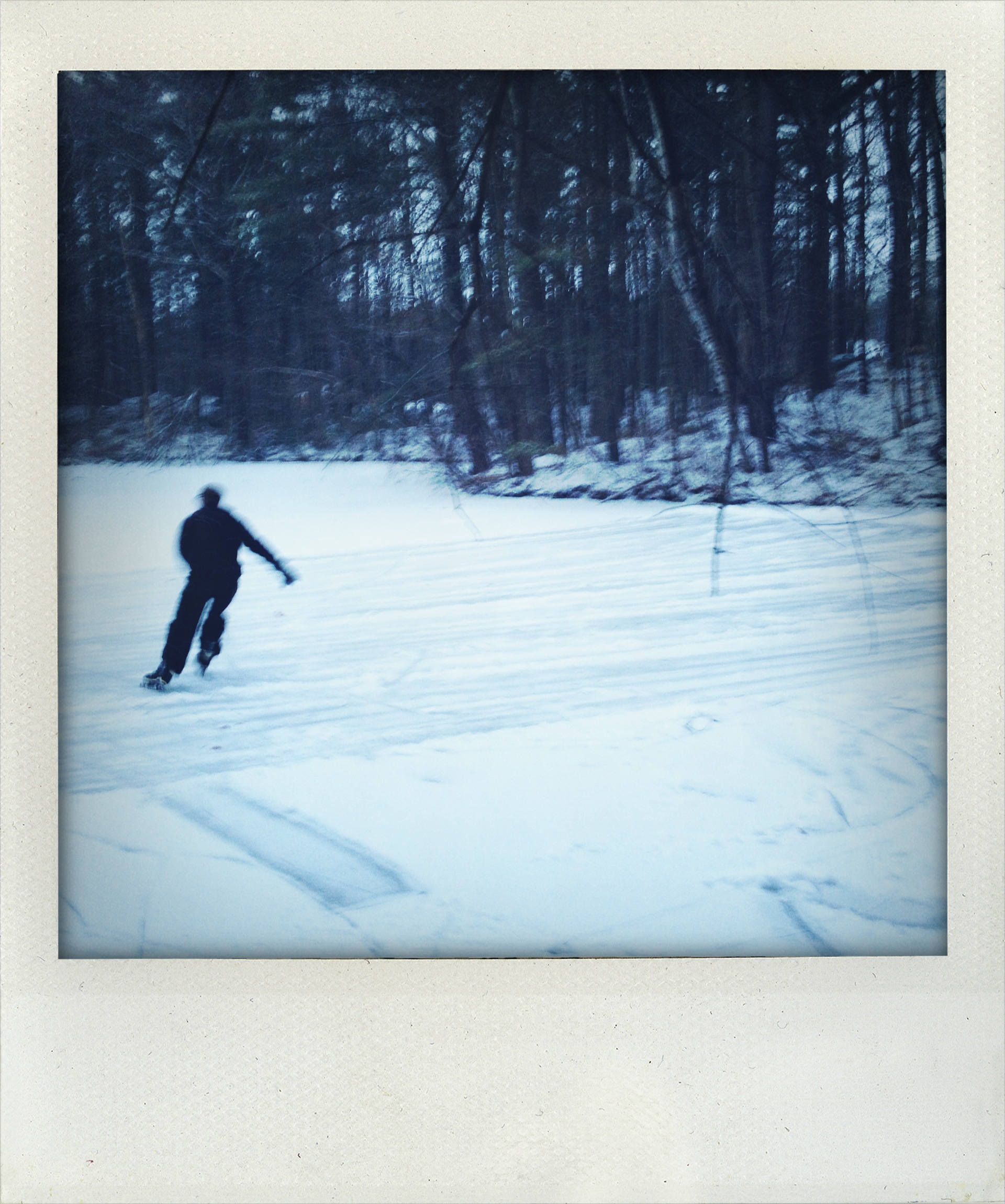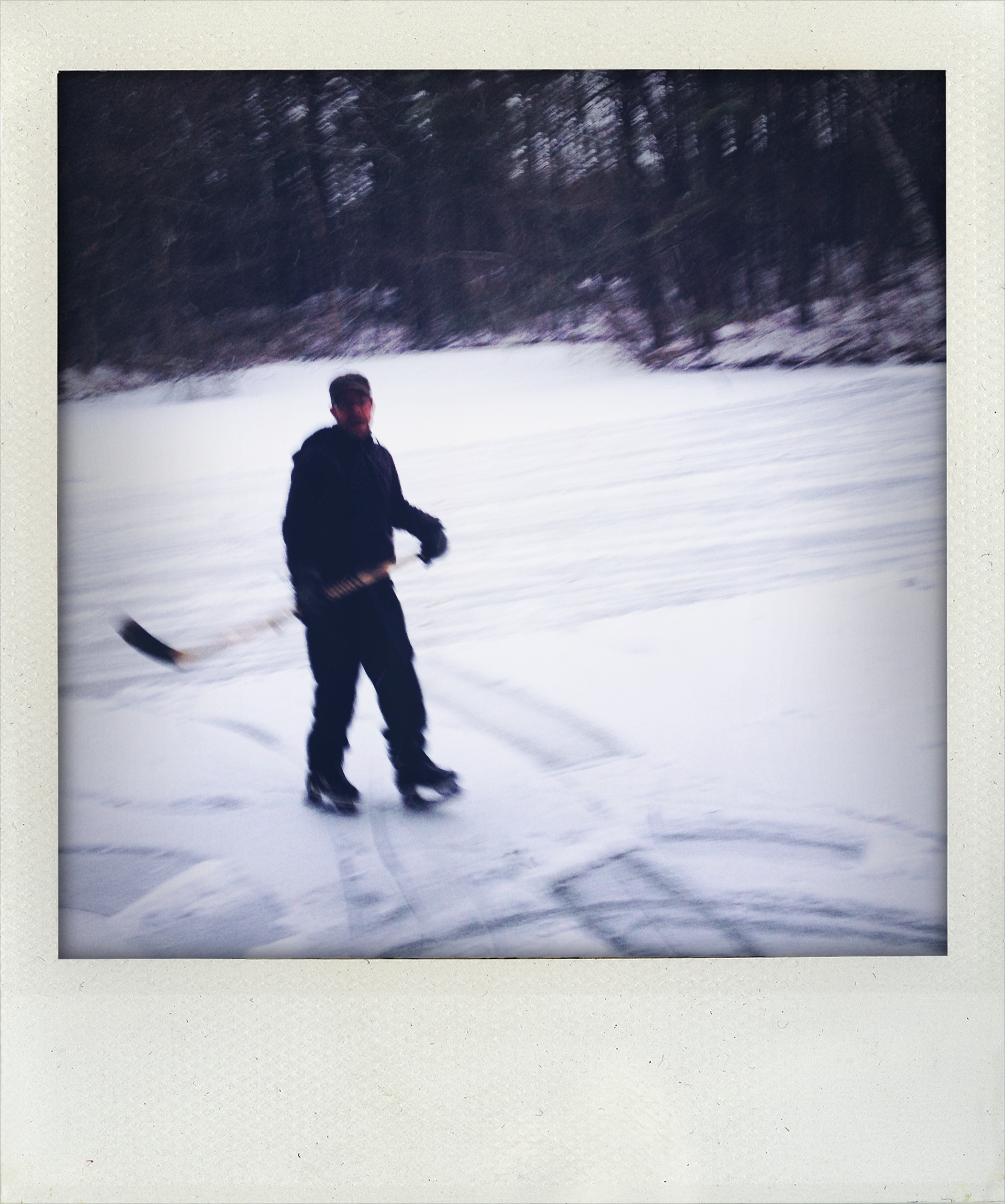 It was cold enough to freeze our quaint backyard pond this week, and Chris broke out the hockey skates and had some fun.