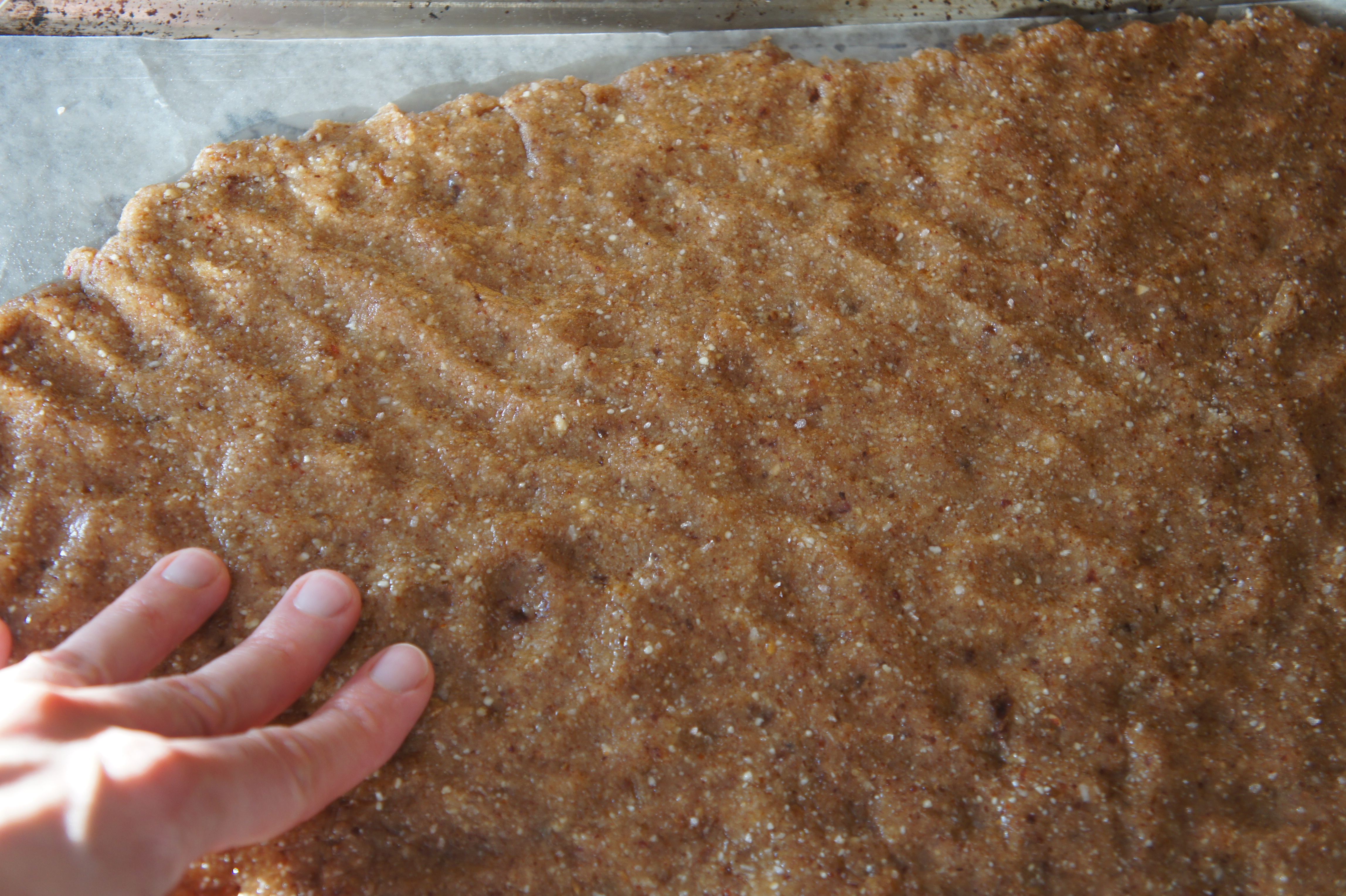 Line a small sheet pan with parchment paper and press the cashew mixture out onto the paper, making a rectangle 1 inch deep. It helps if you put a drop of oil or water on your hands before doing this. Refrigerate the mixture for 2-4 hours, until it’s firm. (or speed up the process and place in freezer for 30 min if you’re impatient like me)