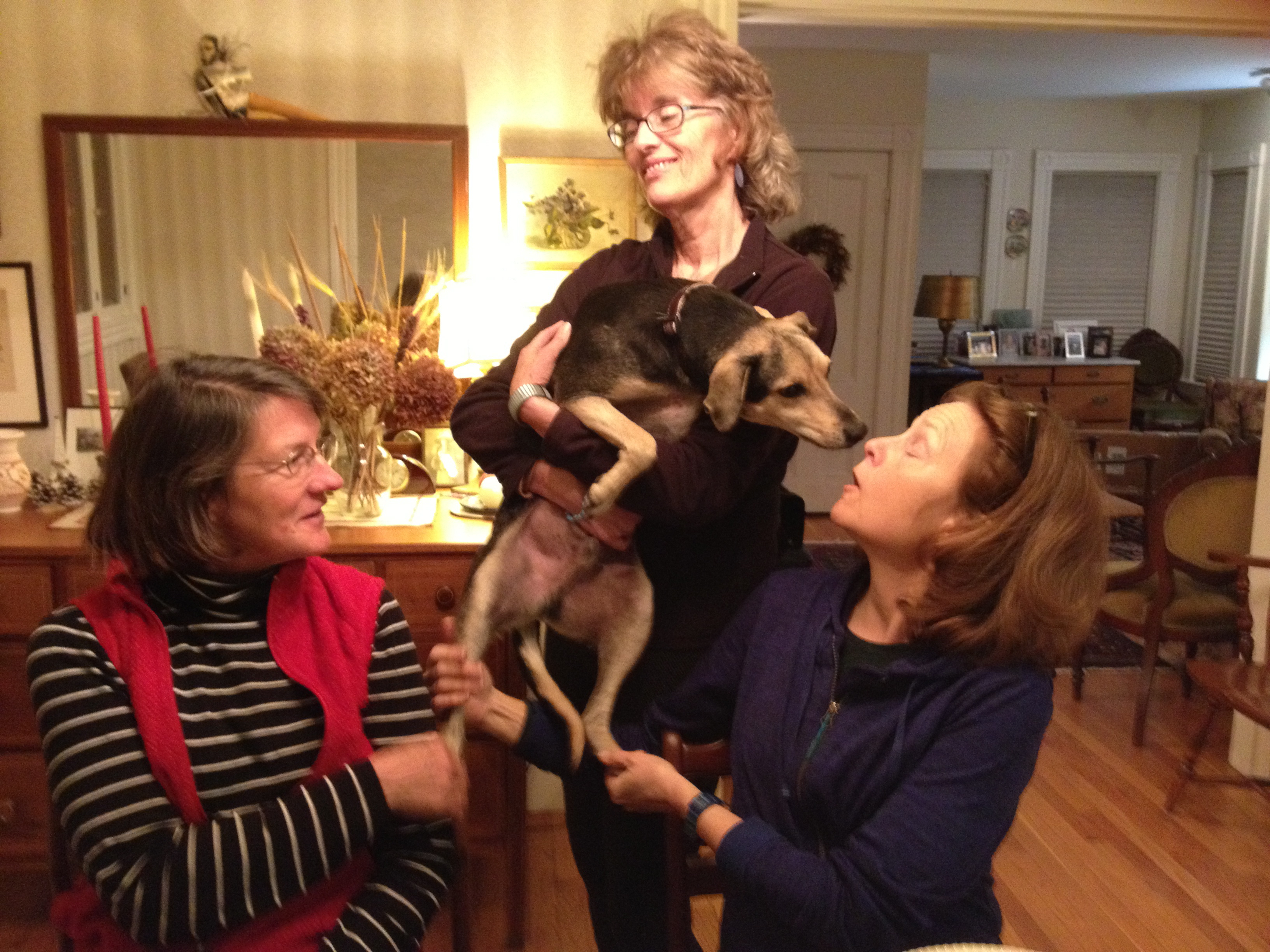 The three special women who donated to my pup’s adoption (we had a party to celebrate a year living here)