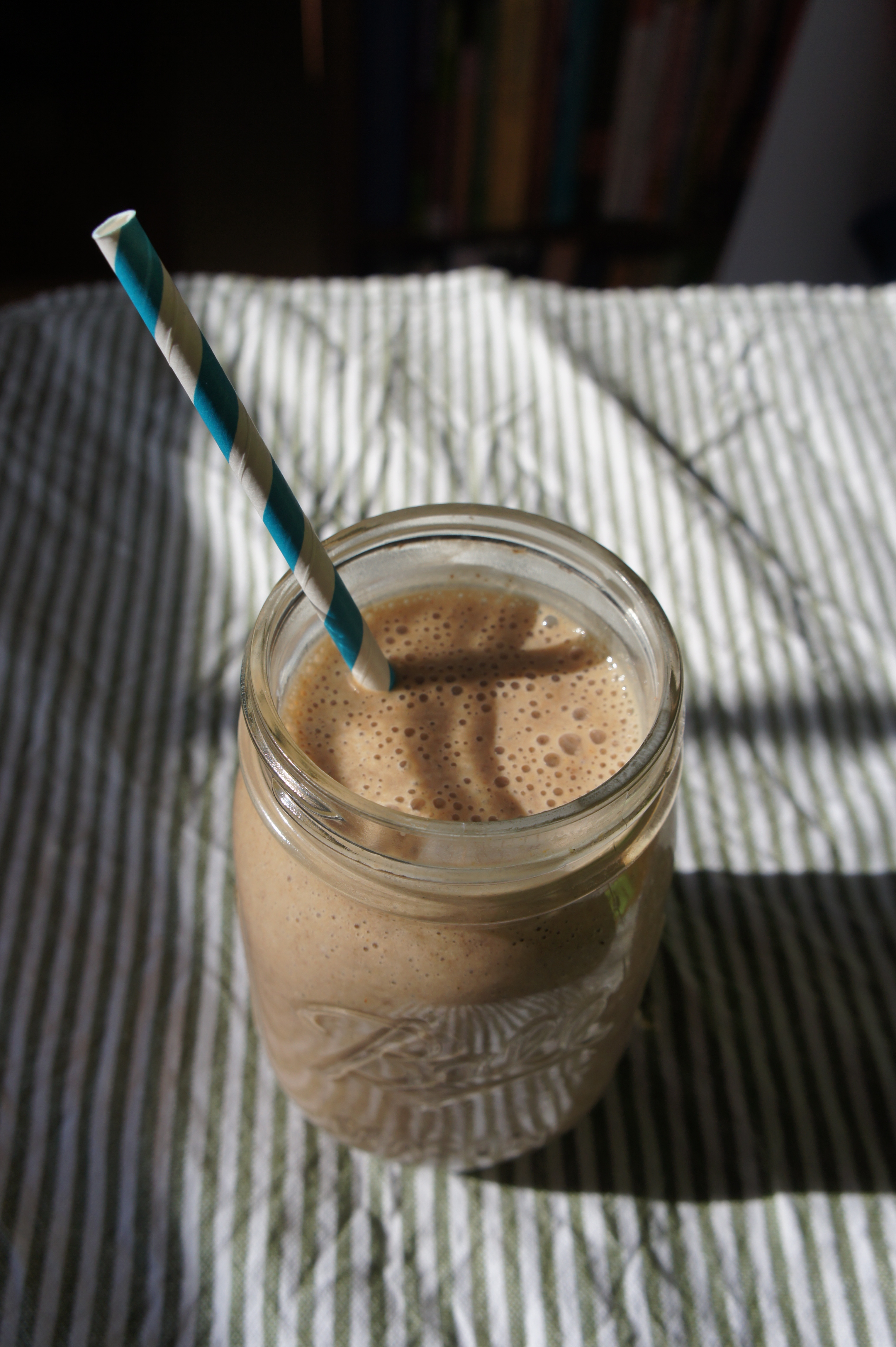 Banana- Nut Butter Carob (or Cacao) Smoothie (serves 1-2)