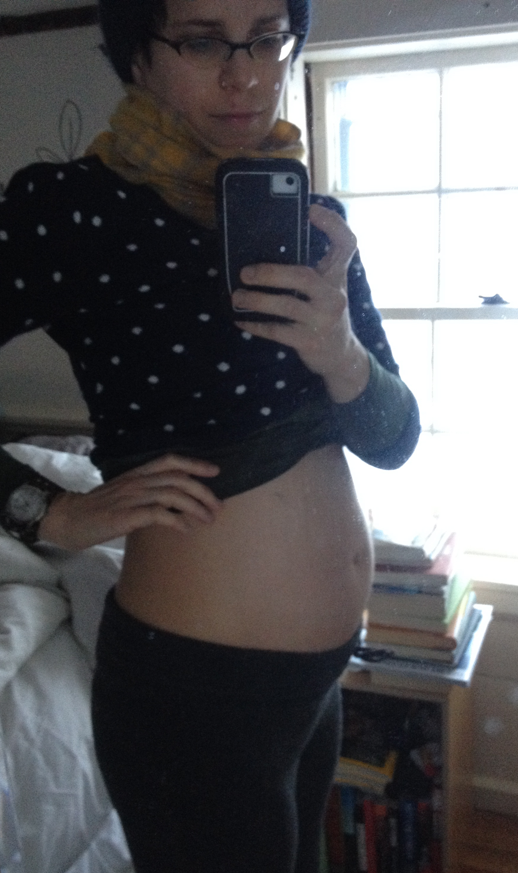 I will admit right here, right now, that this winter has brought me to the end of my frayed little rope (and back again- maybe more a bungee cord than rope) with it’s cocktail of weather extremes and hormone extremes, triggering the sort of neural-chemical turmoil that has plagued me since the age of fourteen, and now it would seem, is exacerbated by pregnancy. Up to twenty percent of women experience antenatal depression I’ve learned, but it’s not discussed nearly as widely as the postpartum variety. So many thoughtful people ask me in a chipper voice how I feel- and I appreciate their caring, but I wonder how to answer as I am fairly certain they mean physically, and on that front, I feel great. No pain, no issues, plenty of energy; my body feels healthy and strong- this part is easy. My cross to bear has always been internal, emotional and subtle. It’s my brain that’s hurting. My brand of depression has never been the slow, lethargic stay-in-bed, binge-eating type and has rarely interfered with my functioning or been evident to those who don’t know me well. It’s characterized by what most of (healthy) me knows to be a skewed circus-mirror lens: agitation, hopelessness, anxiety, irritability (exemplified this week by a meltdown on the phone to Chris after I knocked an entire blender full of smoothie all over the kitchen just as I was about to go out the door for work) and self-loathing. It manifests as wanting to give up, and escape, compounded by the thought that I should be able to change these thoughts and by the guilt that goes with feeling I can’t control my own mind. The Buddhist instruction is to “see what is” and in this way be with it, lean into it, let it fold and wash over me, ride it out and recognize its transiency. I imagine my practice with this will greatly serve in the labor of my baby as I strive to relax into contraction. The breath is key. Teaching and working sometimes offer immense comfort if I can manage to stay present and sometimes offer challenge as I push against tsunami waves of inner critic monologue threatening to derail it on the spot. There are days a mother-earthness caliber patience and love-for-all-humanity keeps me bouyant and effervescent; available to all to hold and comfort and uplift and cheer, as a leader, helper and adviser. But having a little guy growing inside has drawn me both literally and energetically within toward a smaller constellation. It reminds me that my calling is to share, teach, tell stories and write, not to heal the world. And I have someone to ever more urgently care for as he develops at break-neck speed in my body. He and I are busy, world. 129 days to go.